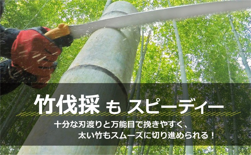 竹だけではなく生木も切断できます。シルキー独自の鏡面研磨による【アサリなし】で切り口は絹のようにツルツルになり、雨水がよく乾き、皮巻きを早め、木を病気や腐りから守ります。