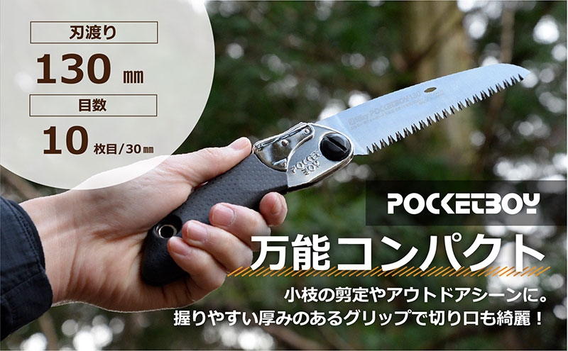 刃渡り130mmで、邪魔にならず常にポケットに入れて持ち運べる手のひらサイズの折込鋸。刃は10枚目で乾燥木材や生木の剪定にもぴったり。趣味の園芸などにも大活躍。【アサリなし】で切り口は絹のようにツルツルになり、雨水がよく乾き、皮巻きを早め、大切な木を病気や腐りから守ります。