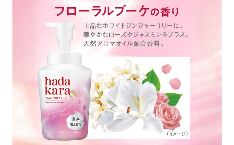 | 容量 | ・hadakara(ハダカラ)モイストボディケアソープ 泡タイプ フローラルブーケの香り 本体 540ml×1本 ・hadakara(ハダカラ)モイストボディケアソープ 泡タイプ フローラルブーケの香り つめかえ用 440ml×4袋 |