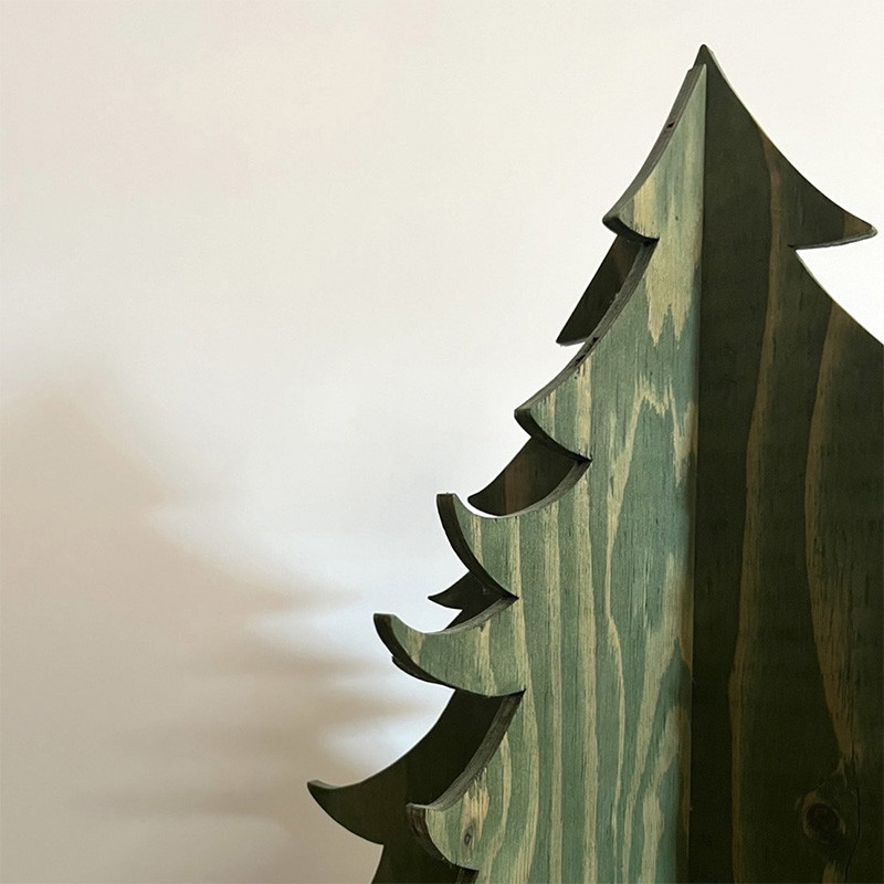 組立式です。リアルな木の木目を生かすように緑の染色は薄めにしています。