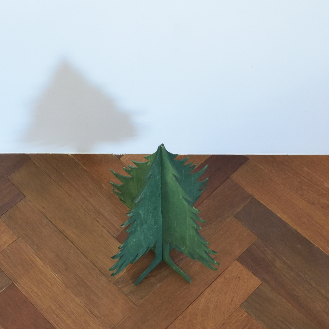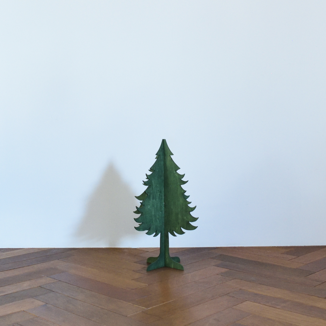 シナ合板を使用して製作したクリスマスツリーです。リアルな木の木目を活かすように塗装しています。
