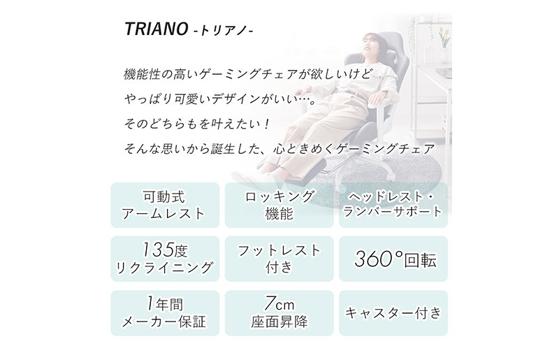 ゲーミングチェア TRIANO トリアノ イス 椅子 チェア インテリア 家具 かわいい おしゃれ キャスター付き ゲーム ゲーミング 機能性 多機能 兵庫 兵庫県 小野市