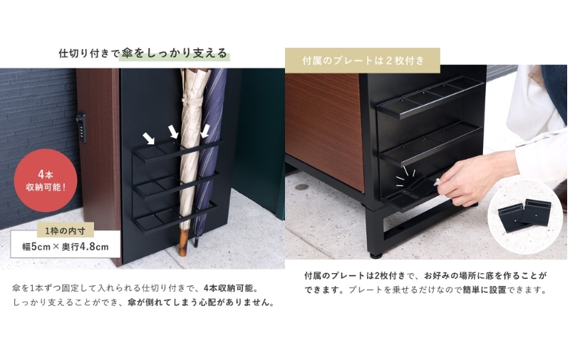 ポストや宅配ボックスに取り付けるだけで傘の収納場所ができるマグネット式の傘立てです。