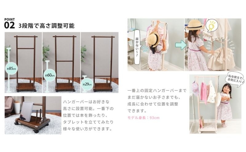キッズハンガーラック selby(セルビィ) インテリア 家具 調整可能 子供 こども 身支度