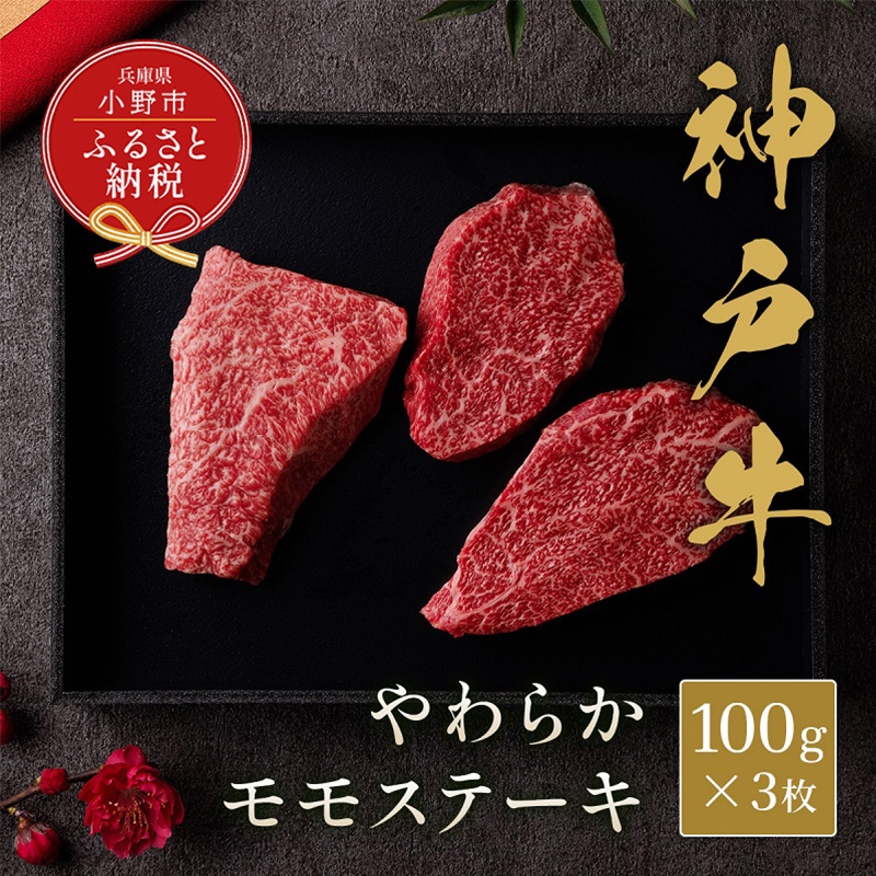 【和牛セレブ】神戸牛モモステーキ300g(100g前後×3枚) / 神戸ビーフ BBQ 牛肉 ステーキ 冷凍 ブランド牛 兵庫県 小野市