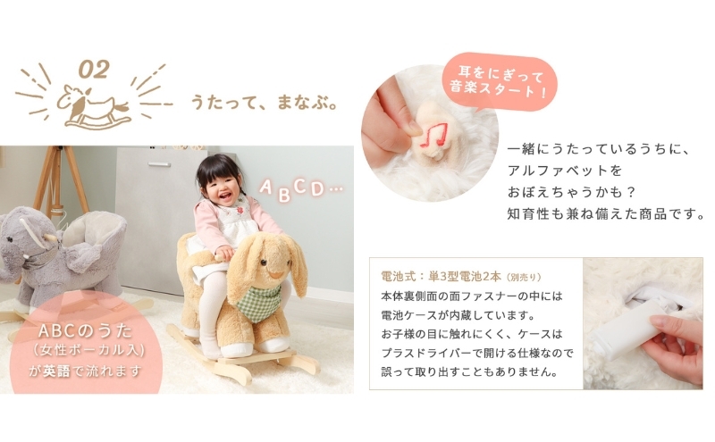 英語でABCの歌が流れる、知育性も兼ね備えたロッキングチェア