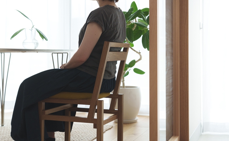背を起こす・もたれる姿勢を叶えるシート・バックレストの位置関係を見直した、コンパクトな日用の椅子です。