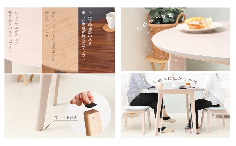 | 容量 | 1台1梱包/生産国:マレーシア 【素材】天板(ナチュラル・ホワイト):ビーチ材突板、MDF 天板(ブラウン):ウォールナット突板、MDF 脚部:天然木ビーチ材 表面加工:ラッカー塗装 【サイズ】約幅90×奥行90×高さ70cm 【重量】幅90(ホワイト):約14kg 幅90(ブラウン):約13.5kg 【耐荷重】約20kg 【備考】お客様組立品 |