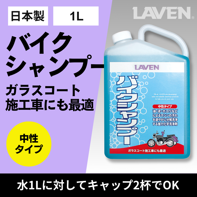 【全カラー対応】ラベン バイクシャンプー 1000mL|大切な愛車を傷めない中性処方。豊かな泡立ちでスッキリ洗浄!