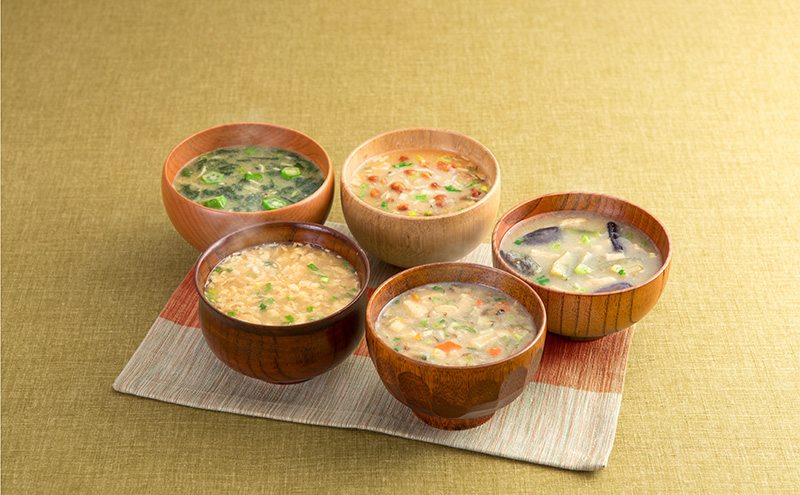 | 容量 | ふんわりたまごのおみそ汁(9.6g)、じゅわ~っと揚げたなすのおみそ汁(11.3g)、ごま香る緑黄野菜のおみそ汁(11.2g)、関西の母の味 かす汁(15.0g)、緑が広がるほうれん草のおみそ汁(7.8g)、伊勢湾で育ったあおさ薫るおみそ汁(6.8g) 各5食 計30食 化粧箱入り |