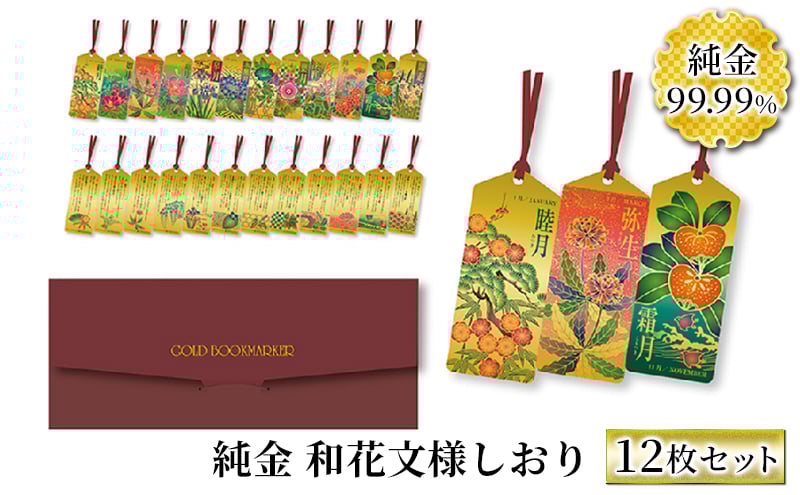純金 カード 和花文様 しおり (12枚セット) ゴールド 金 黄金 99.99 9999 24K 24金 三菱マテリアル 三菱 FINE GOLD CARD 記念品 贈答品 退職記念 感謝状 お祝い 人気 おすすめ 送料無料 [3d28bae300081]