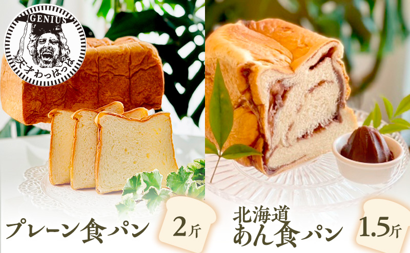 【ふるさと納税】 プレーン 食パン 2斤 & 北海道 あん 食パン 1.5斤 パン ぱん 食パン ブレッド おいしい 朝食 朝ごはん 朝 数量限定 訳あり ふるさと納税 ふるさと 人気 おすすめ 送料無料 兵庫県 三田市 [3d28bae530015]