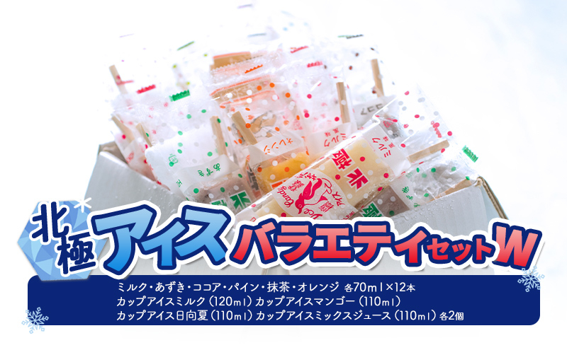 【ふるさと納税】 北極アイス バラエティセットW ( バー : ミルク / あずき / ココア / パイン / 抹茶 / オレンジ 12本 カップアイス : ミルク / マンゴー / 日向夏 / ミックスジュース 各2個 ) [3d28bae540017]