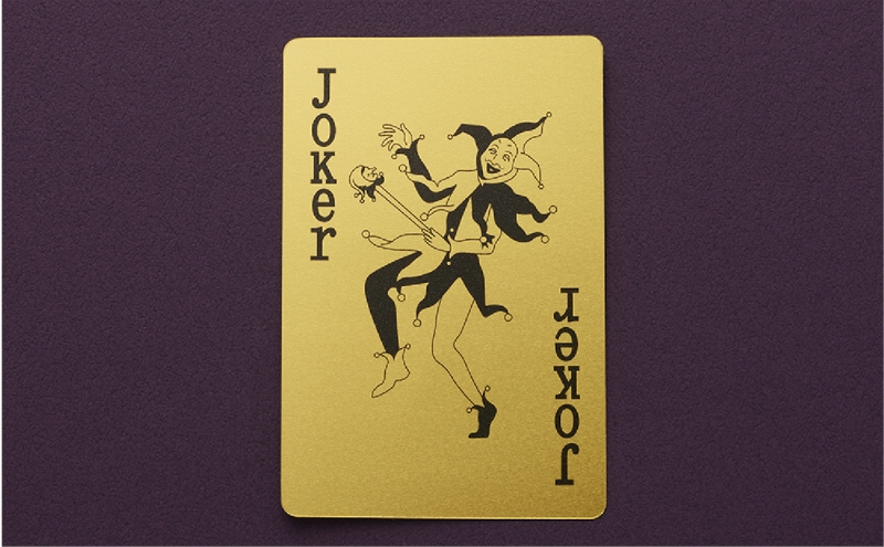 「純金招福トランプ」のセット内容は52枚札と赤いジョーカーが1枚、最後の1枚は4種類の中からデザインをお選びいただき合計54枚になります。
