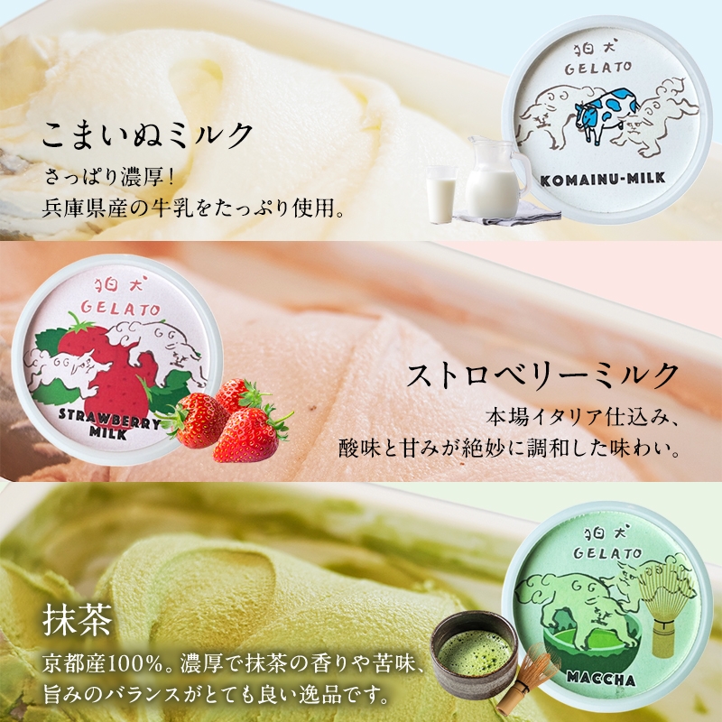 | 容量 | カップジェラート 104ml×12個(12種類)セット ・定番ジェラート9種類(こまいぬミルク、ストロベリーミルク、抹茶、チョコレート、ラムネソルベ、ドルチェラテ、 ピスタチオ、ピンクグレープフルーツ、ブラッドオレンジ) ・季節のジェラート3種類 |