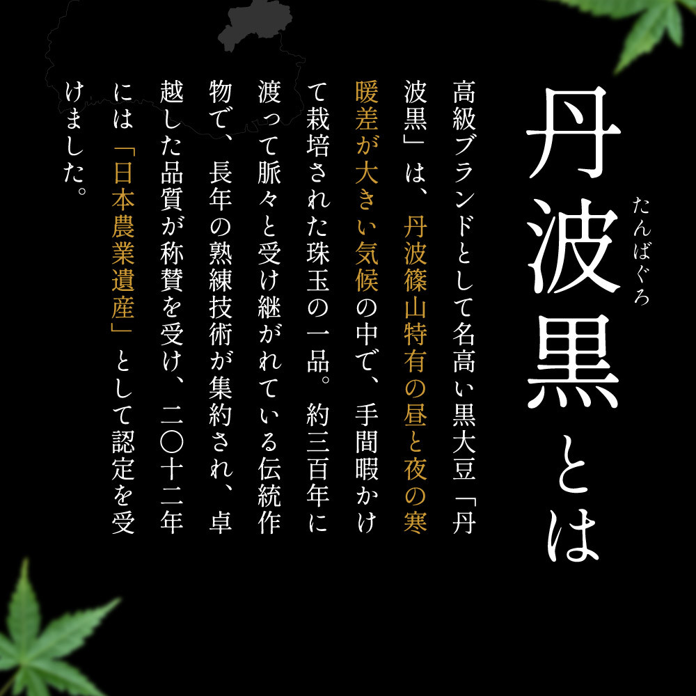 丹波篠山の豊かな気候風土で育ち、長年培われた技術によって日本一との評価を得ている丹波黒大豆!! 阪本屋では10mm以上の大粒(2L)のみを販売しています。阪本屋の契約農家の方が丹精込めて作られた黒大豆を阪本屋従業員が一粒ずつ手より選別を行い、品質をチェックしてから袋詰めし、お客様へお届けします。 少量小分けして真空パックにしていますので、長期保存(1年間)ができ、使いまわしが良く、安心してお使い頂けます。 お届けは2024年12月15日以降、順次発送します。 提供事業者: 株式会社阪本屋 (079-552-1018) ■関連キーワード:兵庫県 丹波篠山市 ささやま ササヤマ 兵庫 関西 返礼品 支援 納税 丹波篠山ブランド 特産品 丹波篠山市 の ふるさと納税 の 返礼品 は 誕生日 母の日 父の日 敬老の日 の プレゼント クリスマス バレンタイン ホワイトデー や お返し ギフト お取り寄せ としても 人気 です! また、 お花見 お中元 お歳暮 などの 贈答品 手土産 などにも おすすめ です!