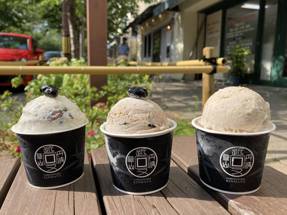 本当に100%丹波篠山産の黒大豆を使用した黒豆と黒豆きなこのアイスクリームです。