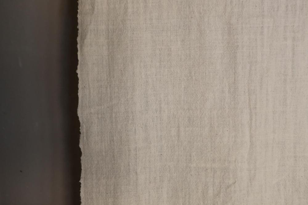 昔は家で手紡ぎ手織りで衣を仕立てていましたが、今の日本ではそれができる人がほとんどいなくなりました。この布は、ご縁があったラオスのお母さんたちが手紡ぎを、丹波篠山の女性たちが手織りを、それぞれ担当しています。手仕事が生み出す不規則な速さや強さから程よいムラが生まれ、表情のある凹凸ができることで空気を含んだようなふんわりとした仕上がりになります。使い込むほどに、なんども洗濯を繰り返すほどに、よりふんわりとやわらかくなっていきます。タオルとして、ストールとして、お使いください。