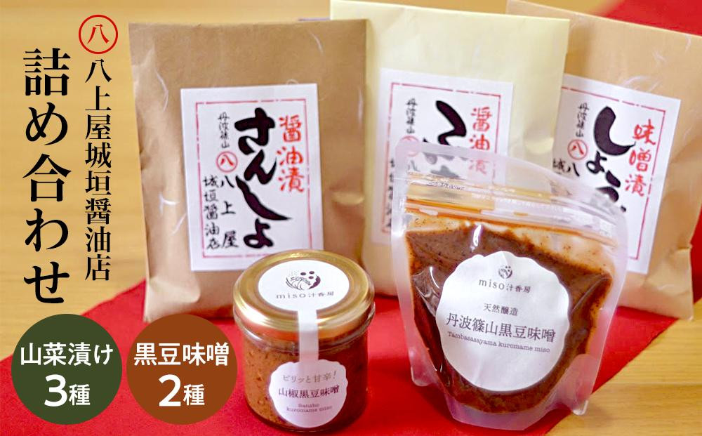| 容量 | さんしょしょうゆ漬け80g×1 ふきしょうゆ漬け 80g×1 しょうがみそ漬け 80g×1 さんしょ黒豆味噌100g×1 丹波篠山黒豆味噌180g×1 |