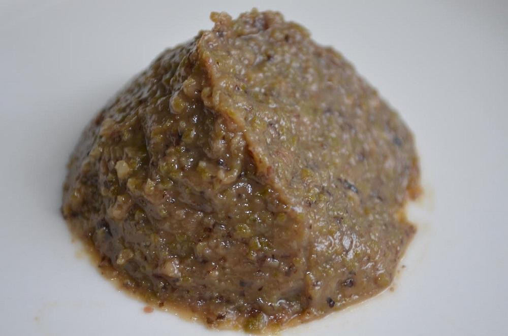 さんしょ黒豆味噌:温かいご飯、お豆腐、お肉などのお伴に。さんしょのピリっとした辛みが効いているあまから味噌を是非ご堪能ください。
