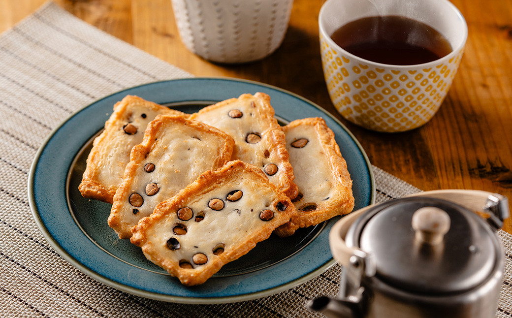 焼き上げまで独自の製法を用いパリッと香ばしく焼き上げたおかきです。