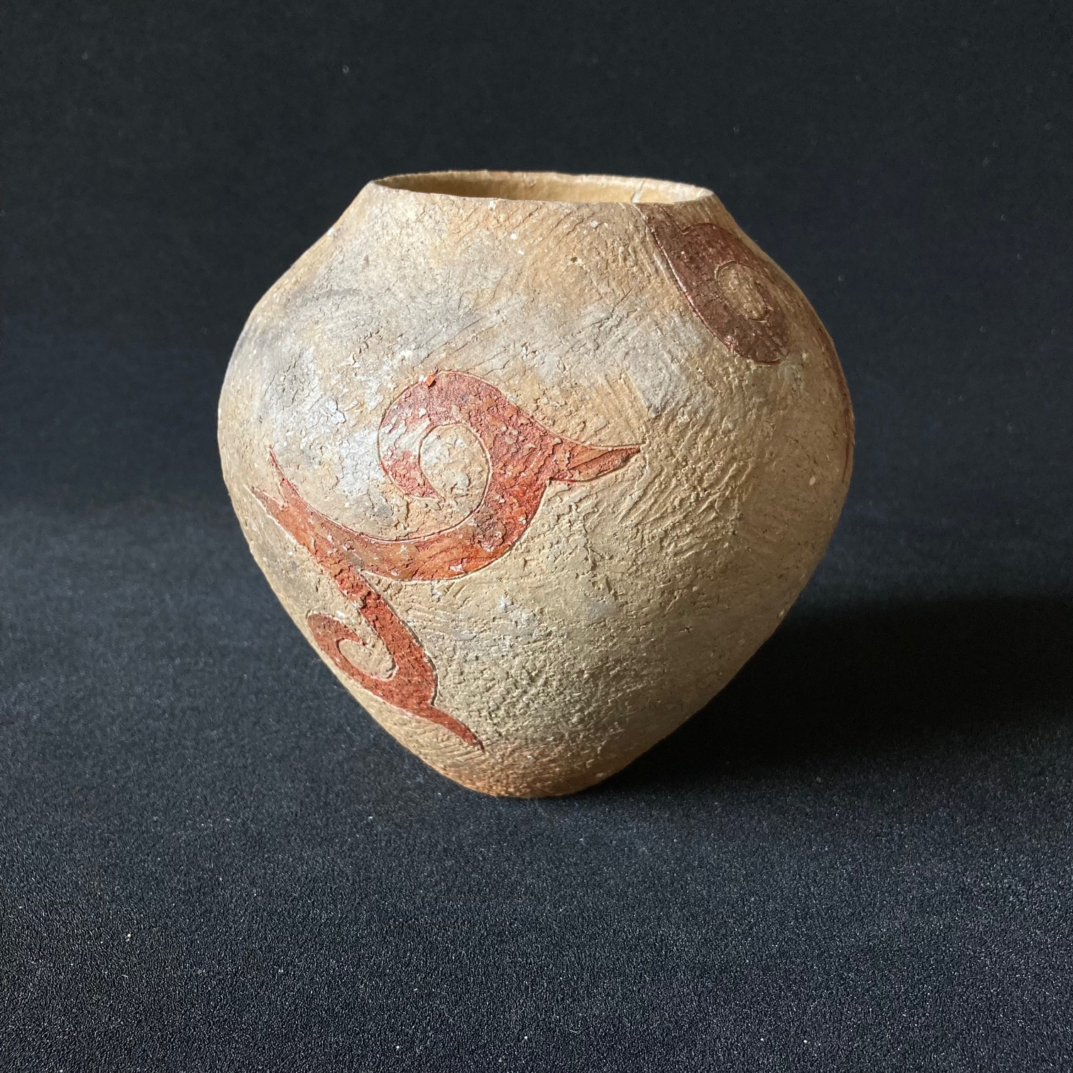 丹波篠山市東部に位置する上筱見という地は原初風景の残る里山です、四季の移り変わる色や音、風などを感じながら制作しております。丹波篠山の工芸はその風土から生まれる、日々の生活を少しだけ豊かにするものです。この作品は原始土器をモチーフにした作品です。花を一輪挿すことで里山の風景を感じることができ、心のやすらぎの時間と空間をもたらせてくれることになることと思います。