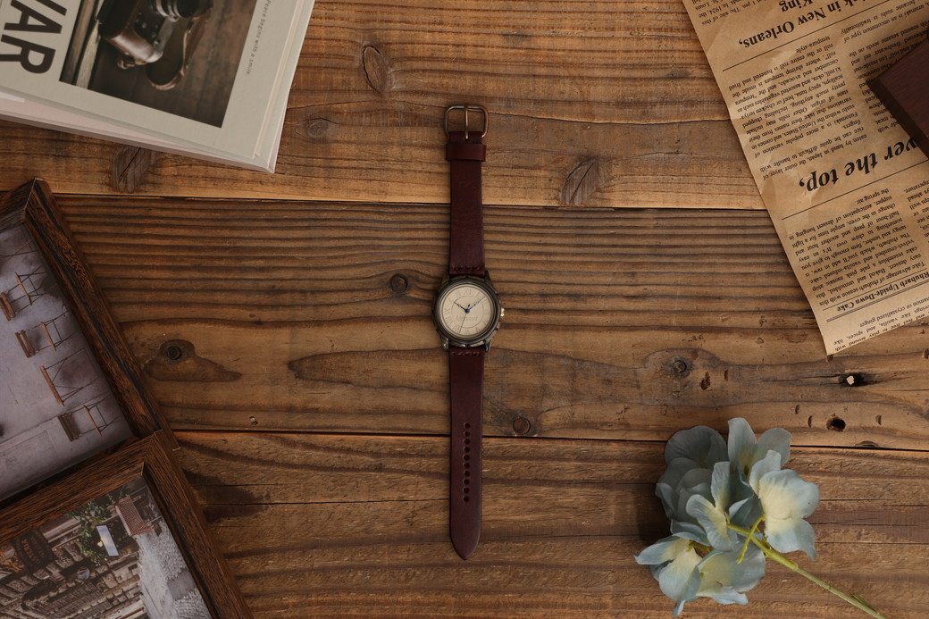 真鍮やシルバー、レザーなどの素材から、彫金やレザークラフトの技術を用いてひとつひとつ丁寧に作り上げたハンドメイドの腕時計です。