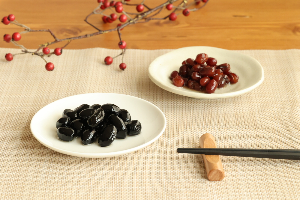 ◆丹波黒煮豆:漬け込み方式という独自の技法により、砂糖焼けが少なくなり、黒大豆本来の風味や旨みを生かしつつ、適度な食感も残っていて食べ応えも良い煮豆です。◆丹波大納言煮豆:漬け込み方式という独自の技法により、1粒1粒ふっくらと甘すぎないあっさりとした味わいに仕上げました。ぜんざいやおしるこ、羊羹、小倉アイス等にもご利用頂けます。