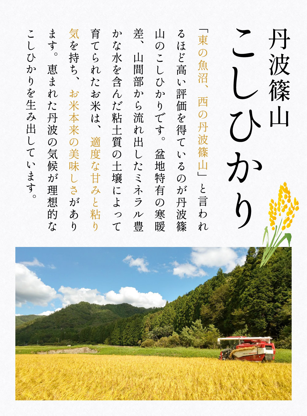 大自然に囲まれた丹波篠山で栽培されたお米は、味も香りも格別です。