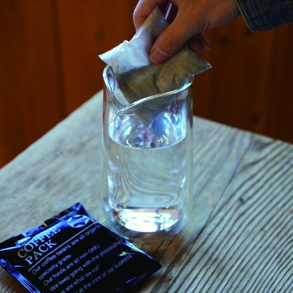 こちらのパックをお水やお湯に浸けるだけで美味しいコーヒーができあがる、コーヒーパックをご用意しました。