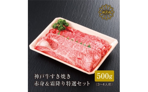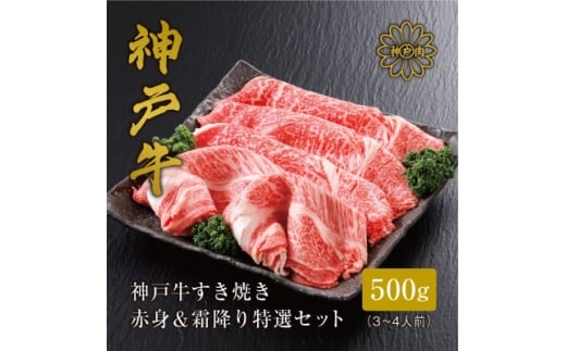 <神戸牛>すき焼き 赤身 & 霜降り 特選 食べ比べ セット 500g_ すき焼 スキヤキ お肉 肉 牛肉 神戸ビーフ 肩ロース 但馬牛 もも もも肉 ギフト プレゼント 贈り物 贈答 食べ比べ セット 赤身 霜降り 神戸牛 【1313138】