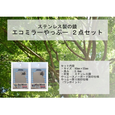 | 容量 | ■お礼品の内容について ・割れない鏡エコミラーやっぷ~[2枚セット(スノーボードバージョン、祭りバージョン各1枚)] 製造地:日本 ■原材料・成分 サイズ:縦55mm 横90mm 厚み0.4mm 重 量:約20g 材 質:ステンレス鋼 養父市イメージキャラクター【やっぷ~スノーボードバージョン、やっぷ~祭りバージョン】の印字がそれぞれにあり。 |