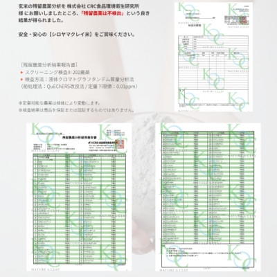 | 容量 | ■お礼品の内容について ・シロヤマクレイ米(玄米)[1kg] 原産地:兵庫県養父市 ■生産者の声 「商品が生まれたきっかけ」 豊かな自然と静かな街並みが特徴の兵庫県北・養父(やぶ)の地にて、大正時代より、弊社の城山から採掘する良質な粘土鉱物を使い事業を営んでいます。 私達はこの粘土鉱物を「城山ブルークレイ」と名付けました。 土木建築資材として強固な性質が特に優れていると好評をいただいています。 一方で、この鉱物の混ざった土壌では、米や野菜が美味しく、生育が非常によかったことから、皆様にお届けしたいと出荷体制を整えました。 「弊社の想い」 クレイ分析では世界でも屈指の実力を誇るQUT クイーンズランド工科大学(オーストラリア)や、兵庫県立技術工業センタ―といった研究機関や、立命館大学等に弊社のクレイを持ちこみ検証を重ね、効能を確認してきました。 コスメティック原料として開発を進める一方、地元で培ってきた知恵の結晶、肥料としてクレイを土に撒くことで稔る美味しいお米を皆様にご賞味いただきたいと思っています。 ■注意事項/その他 ※画像はイメージです。 ※パッケージは予告なく変更する場合がございます。 ※光・熱・夏場の暑い日差しや高温多湿は鮮度低下が進みやすいので注意してください。 |