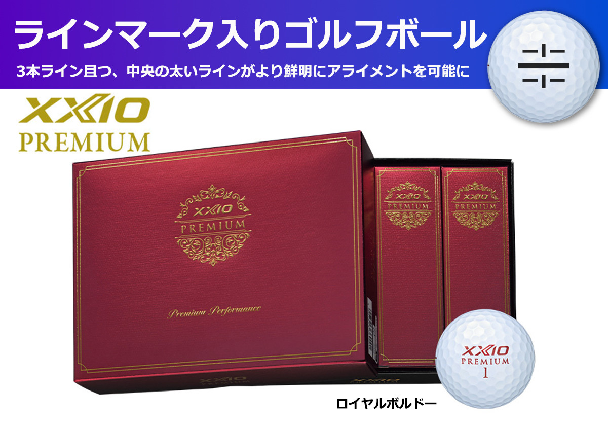 極上のソフトなフィーリングでさらに大きな飛びを堪能できる逸品【1ダース/ライン入 ゴルフボール XXIOプレミアム ボルドー【1ダース /12球入り】【ライン入り】