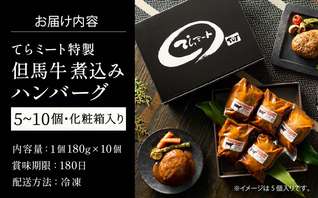 ハンバ-グは但馬牛を粗挽きにして焼き上げ自家特製デミグラスソ-スで煮込んでいます てらミ-ト特製 但馬牛煮込みハンバ-グ5個入 8個入 10個入