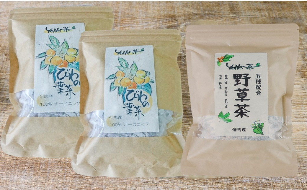 <YoNe茶>上品な甘みと香り「びわの葉茶」×2袋と香ばしく風味豊かな「野草茶」×1袋セット