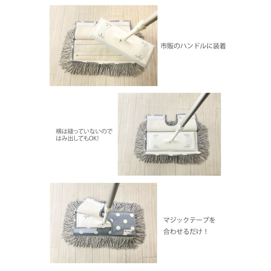 | 容量 | デザインフロアモップ 1つ 全体 39cm×22cm(糸含む) ※ハンドルは付いておりません。お手持ちのハンドルに取り付けてご使用ください。 |