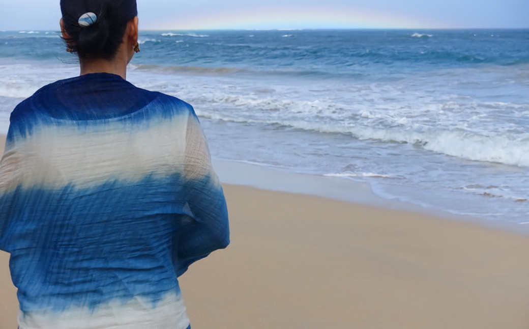 | 容量 | おのころ藍の超大判ストール 1枚 丁寧に織られた播州織(210×90cm)の大判コットンストールを、島の海と空をイメージして藍染しています。 |