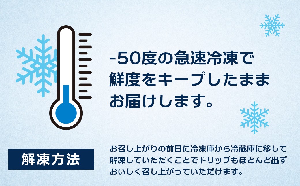 -50度の急速冷凍で鮮度をキープしたままお届けします。