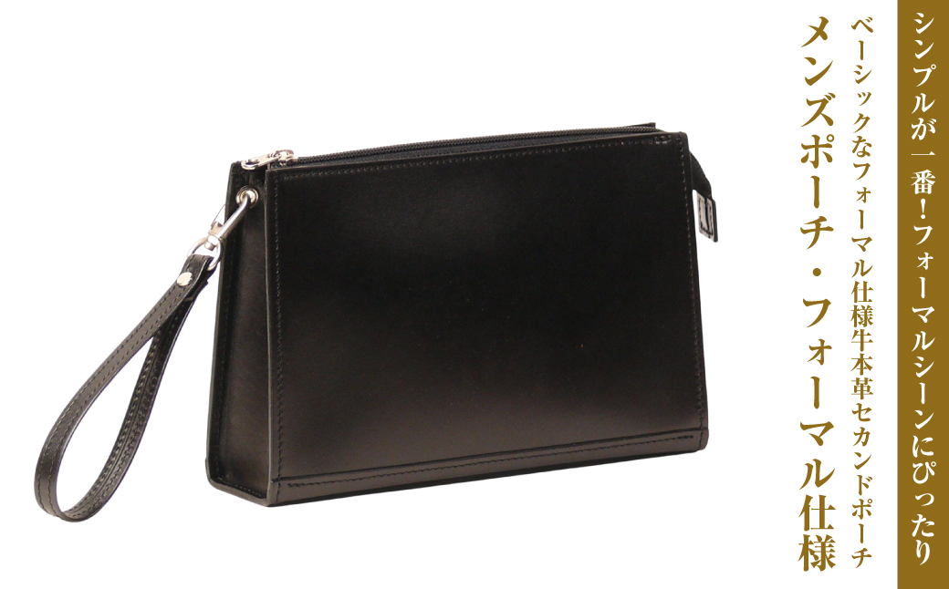 チョイスPayポイントと交換できる品 シンプルが一番!フォーマルシーンにぴったり、上品な日本製本革メンズポーチ ベーシックなフォーマル仕様牛本革セカンドポーチ「メンズポーチ・フォーマル仕様」