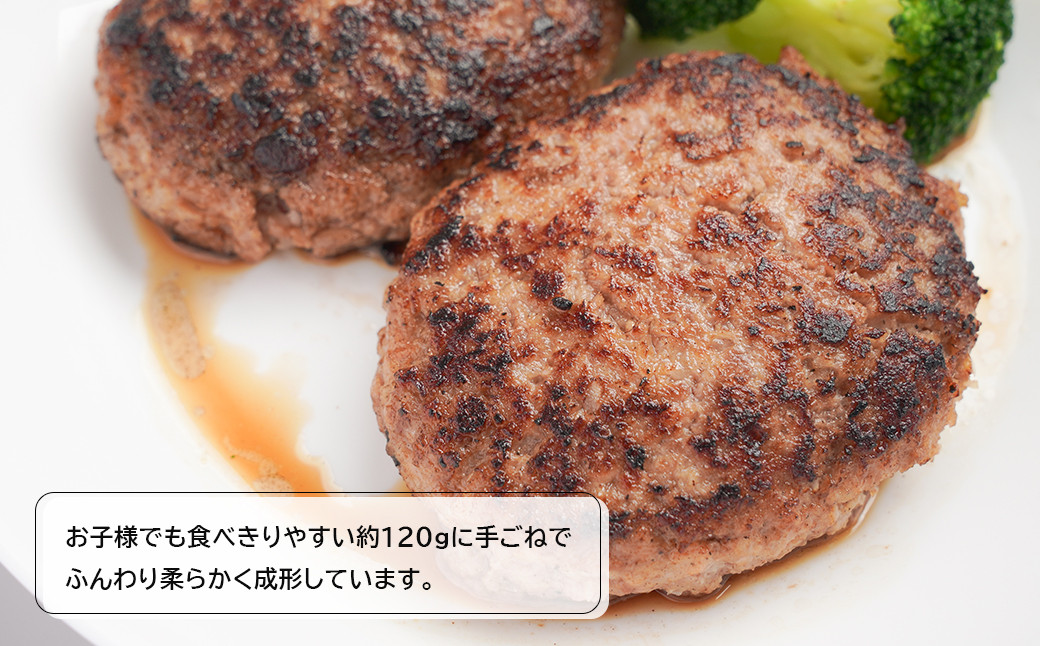 お子様でも食べきりやすい約120gに手ごねでふんわり柔らかく成形しています。