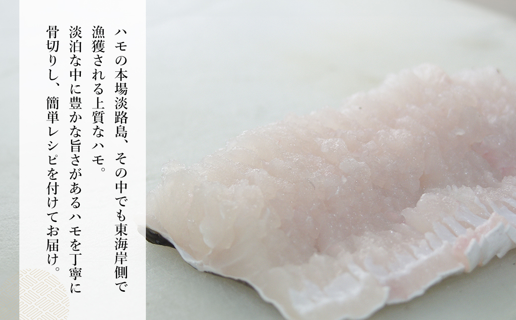 淡泊な中に豊かな旨さがあるハモを丁寧に骨切りし、簡単レシピを付けてお届け。