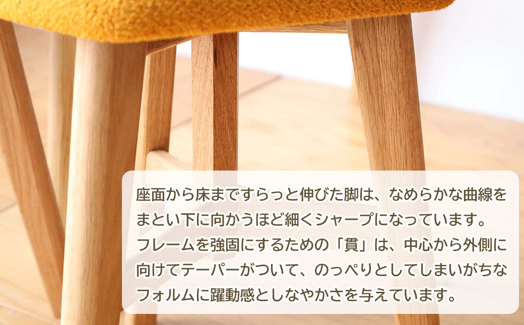 | 容量 | 1脚 【size】W=350 D=350 H=500(高さ500mm以下の指定可能(無料)) 【detail】 脚部:無垢オーク材/オイル仕上げ 座面ファブリック 全4種 |