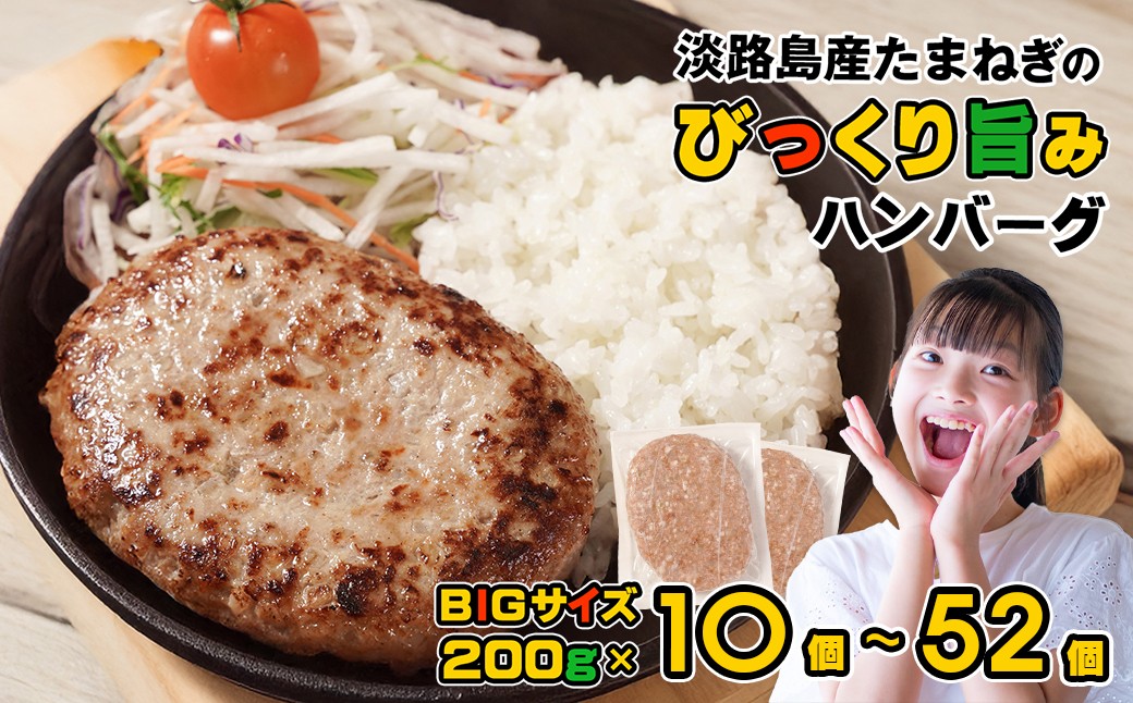 淡路島たまねぎのびっくり旨みハンバーグ 200g×10個 大きい 淡路島玉ねぎ100% 人気 合挽 冷凍食品 小分け 個包装