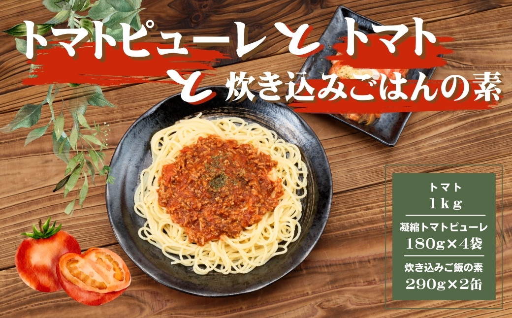 たかがトマトされどトマト の田中農園 トマト、炊き込みご飯の素、トマトピューレー AP5 田中農園自慢のトマト1kgと缶詰とピューレーセット【 とまと トマト トマトソース 非常食 保存食 野菜 セット 新鮮 】