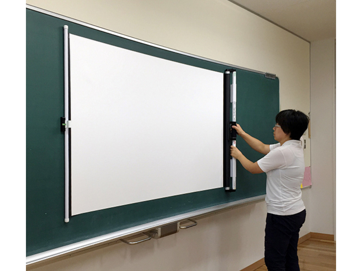 平面・曲面黒板ともに対応するフレキシブルな幕面 AG33 ローラー巻取型(横引き)マグネット式スクリーン70型