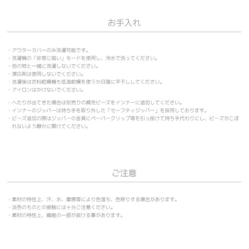 ※新品のYogiboは、新しいビーズ特有の科学的なにおいがすることがありますが、人体に害のあるもの ではございません。通常、数日~1ヶ月ほどでにおいはなくなりますが、においが 気になる場合は風通しの良い場所にしばらく置いてください。