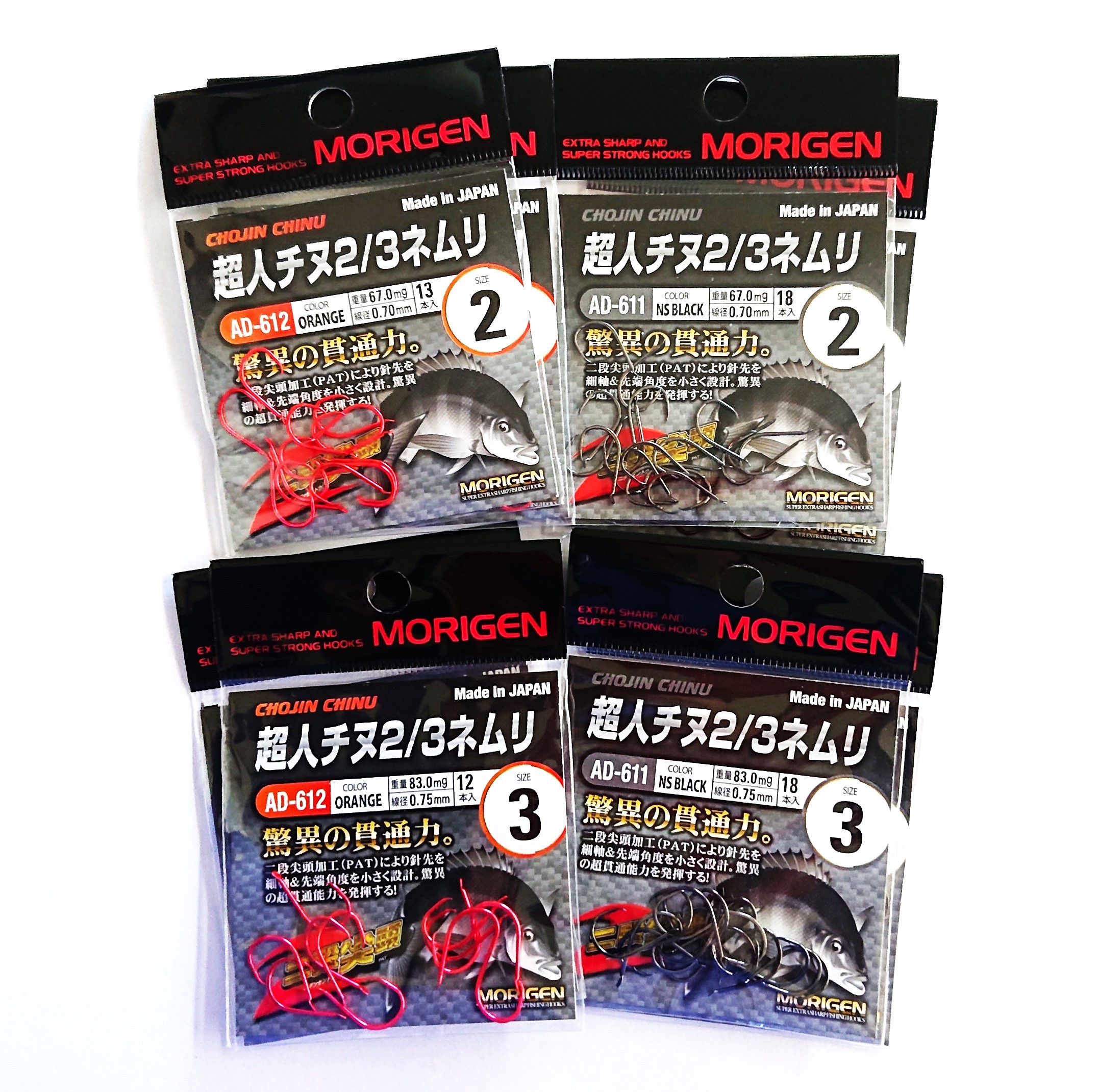 もりげん(MORIGEN) 釣針 超人チヌ2/3ネムリ 8枚セット(2号/各色2枚・3号/各色2枚) 釣り針 釣り チヌ 黒鯛