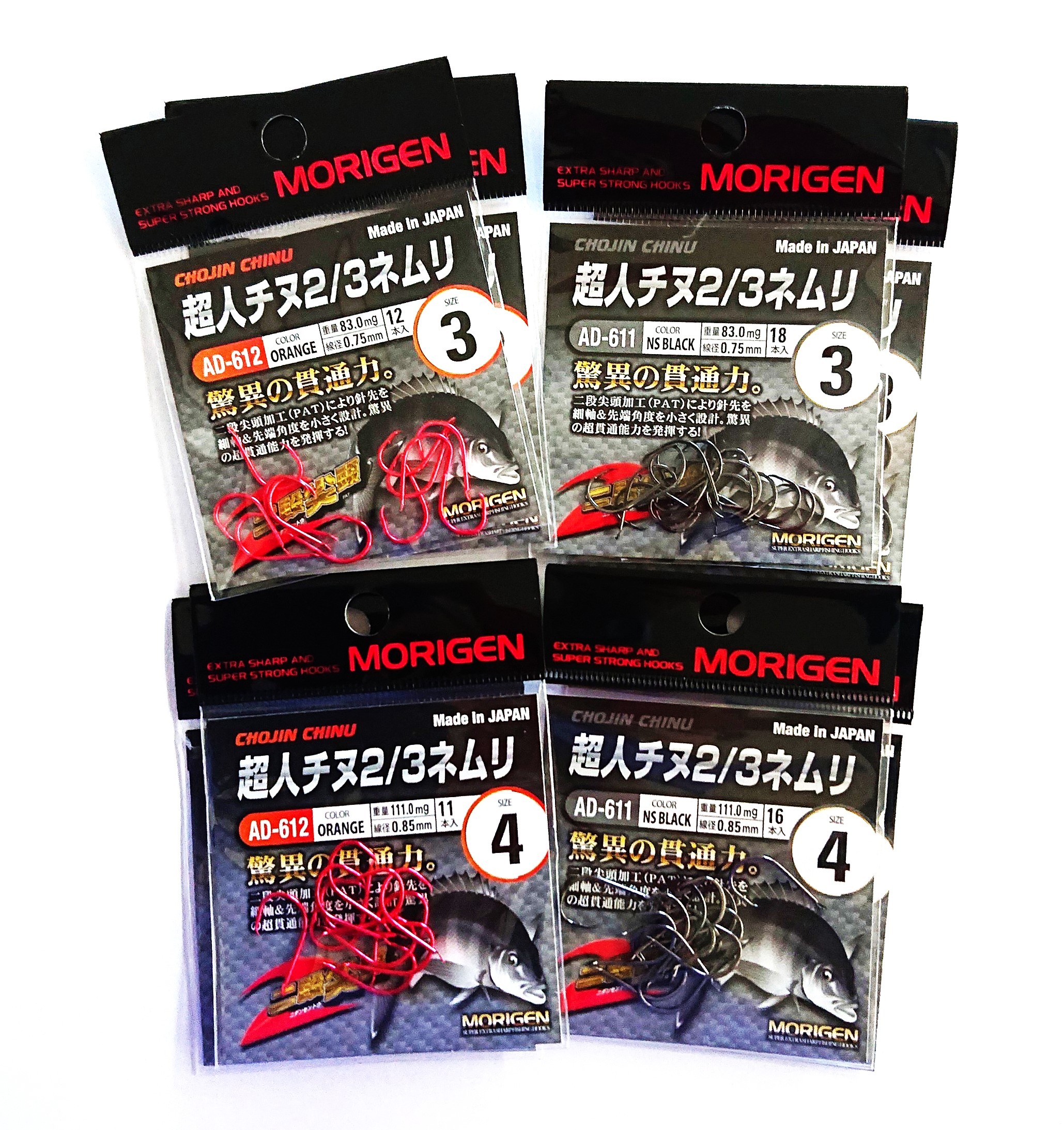 もりげん(MORIGEN) 釣針 超人チヌ2/3ネムリ 8枚セット(3号/各色2枚・4号/各色2枚) 釣り針 釣り チヌ 黒鯛