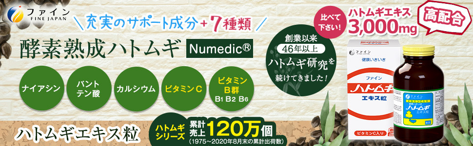 ●ハトムギは4~5倍に濃縮しており、ビタミンB1・B2・B6、ナイアシン、パントテン酸も配合しています。